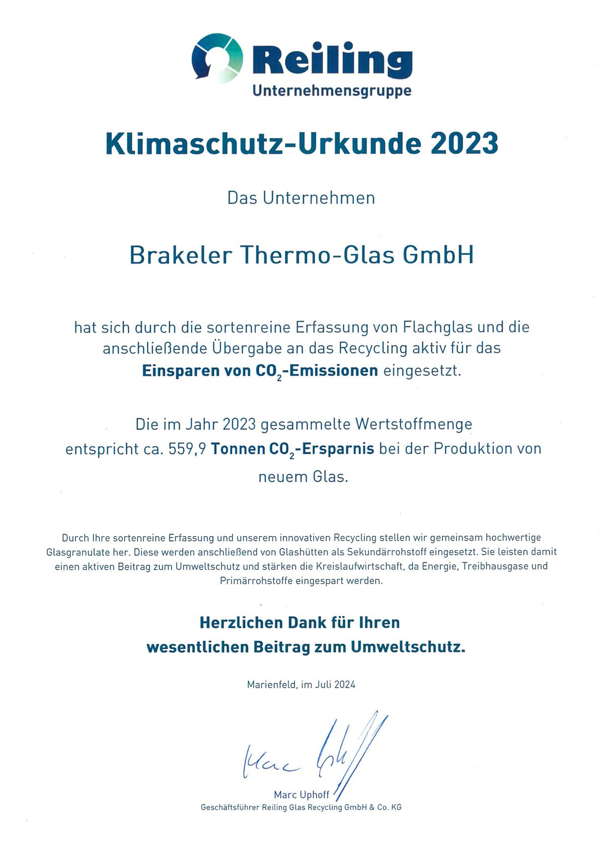 Verleihungsurkunde RAL Gütezeichen ESG-HF